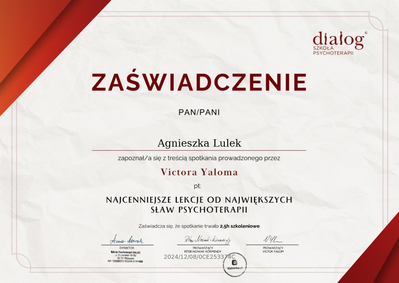 Jeśli szukasz Psychoterapeuty z niespotykanym wyczuciem i intuicją, albo zastanawiasz się, czy spotkania z Psychologiem są dla Ciebie - namawiam Cię: spróbuj z Agnieszką!